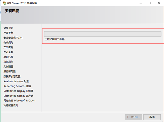 千呼万唤始出来,此时将进行各个功能组件的安装,该界面可以看到安装的功能及其进度,安装速度取决于选择了多少功能及本机性能