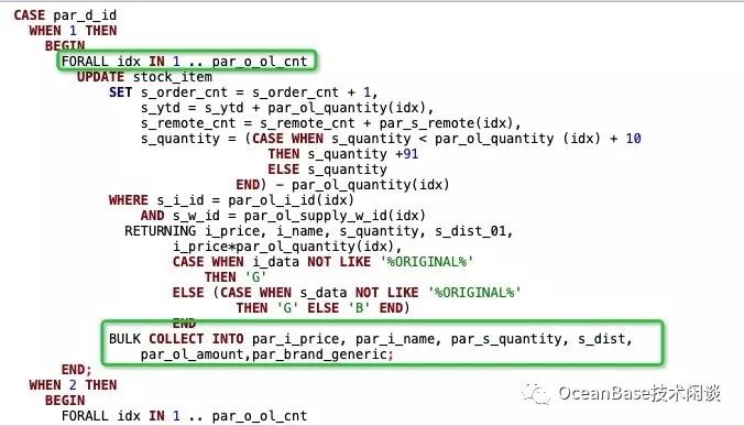 OceanBase从2.0版本就开始支持自定义函数、存储过程和匿名块了。对ORACLE存储过程兼容的能力是逐步完善的。此次TPC-C