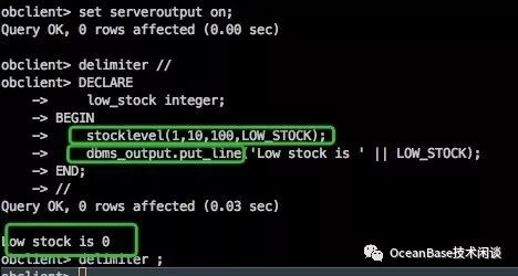 的核心业务逻辑全部是通过存储过程实现的。下面就选取其中几个存储过程示例看看OceanBase存储过程最新能力。