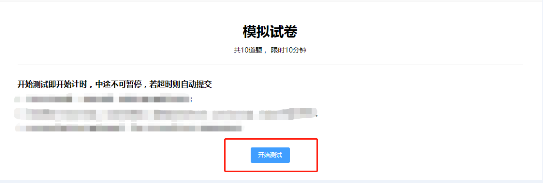 1.认真阅读考前须知后点击“开始测试”后开始做题