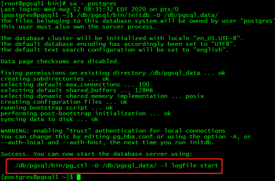 [postgres@pgsql1 ~]$/db/pgsql/bin/initdb -D /db/pgsql_data/