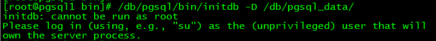 注意:如果使用root用户初始化,会报错:initdb:cannot be run as root,需要切换到postgres用户下初始化: