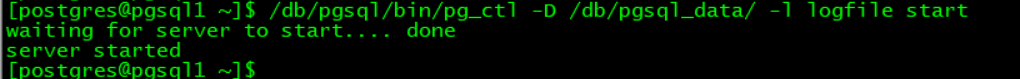 [postgres@pgsql1~]$ /db/pgsql/bin/pg_ctl -D /db/pgsql_data/ -l logfile start