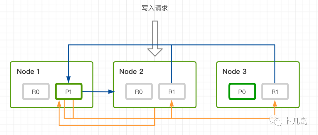 当有数据写入的时候,首先请求节点会根据 _routing 路由规则找到对应的 primary shard,并将请求转发给 primary shard 所在的节点。primary shard 完成写入后,将写入并发发送给各 replica, raplica 执行写入操作后返回给 primary shard , primary shard 再将请求返回给请求节点。