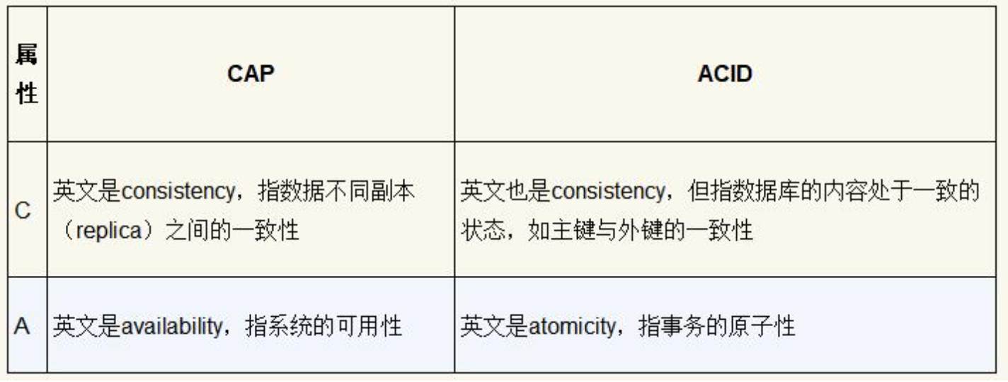 表1-1 CAP与ACID中的C和A的不同