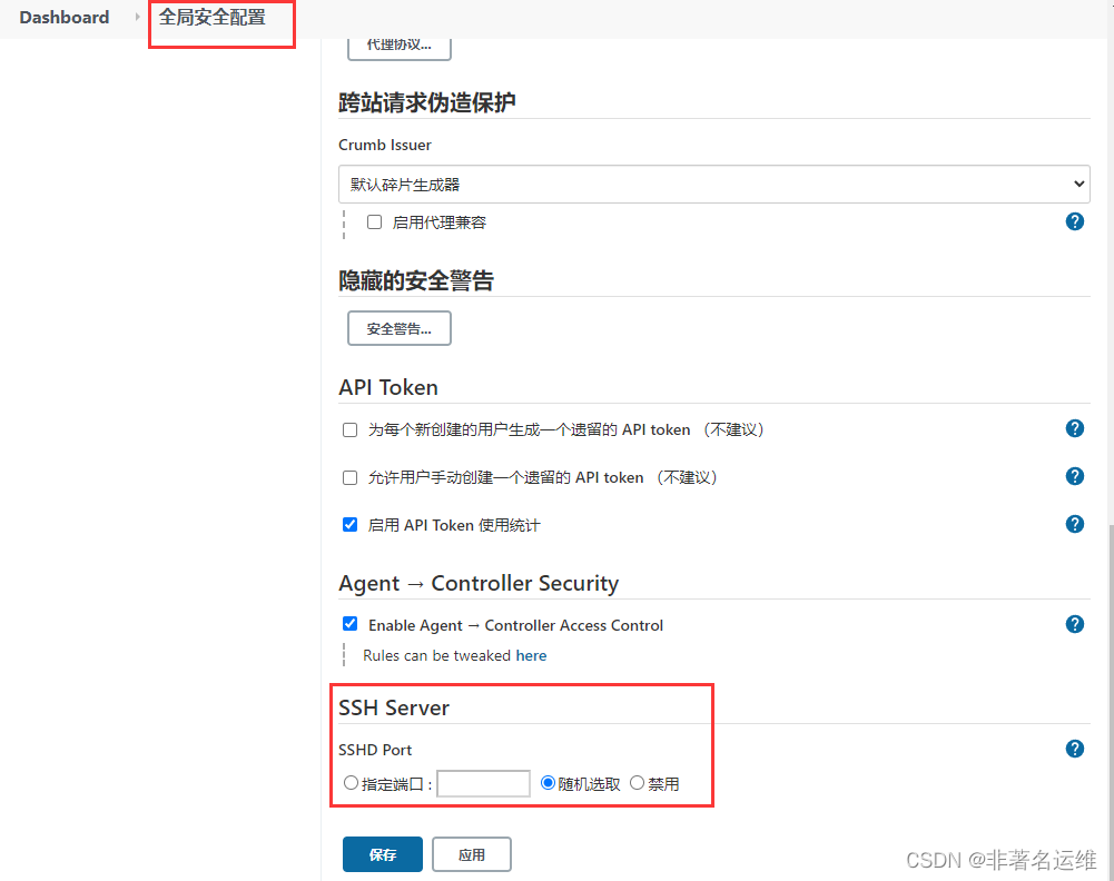 Jenkins- 系统管理 - 全局安全配置, 把 SSH Server 设置为启用(默认是禁用)
