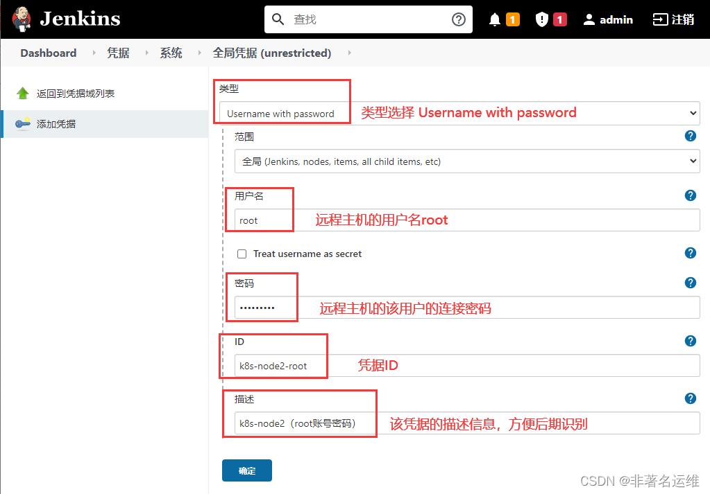 Credentials:添加要远程的宿主机的ROOT账号和密码的凭据