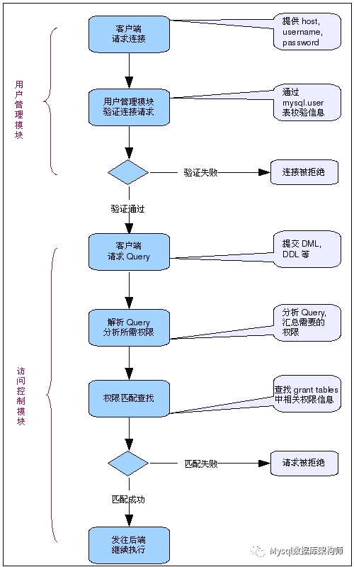在MySQL数据库中,权限访问控制实际上有两大模块。
