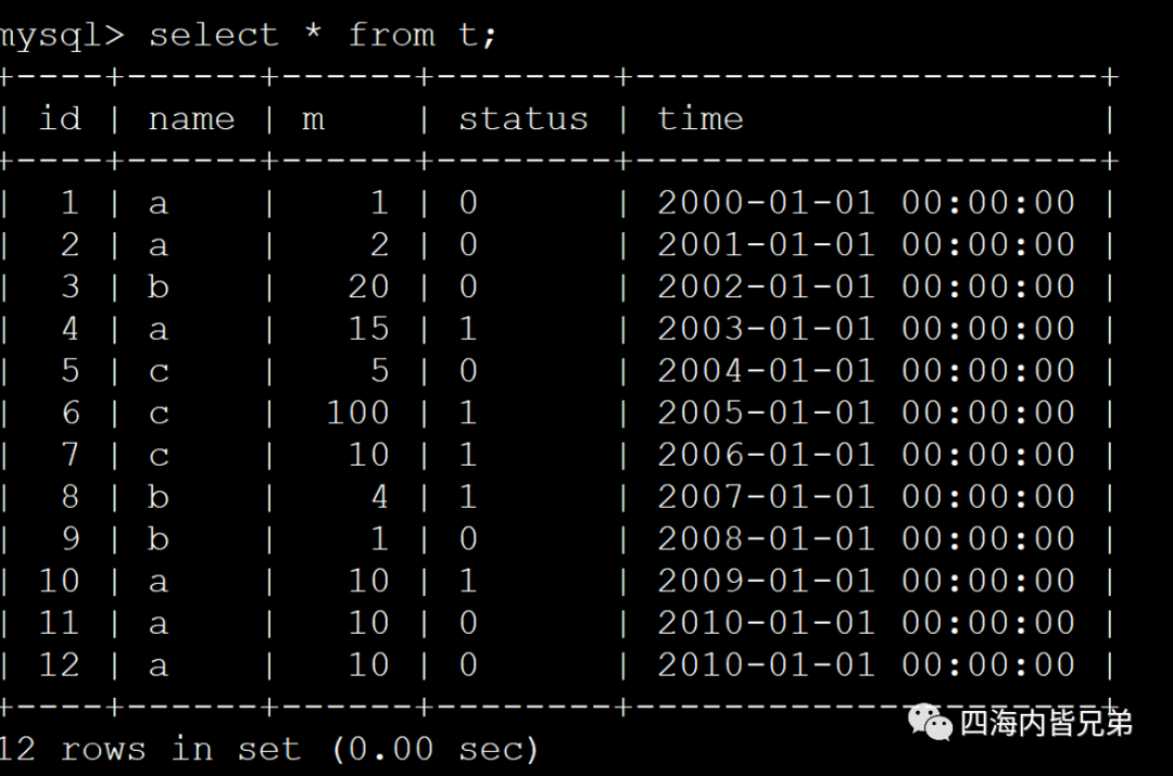 假设这就是那个表了。以MySQL为例,Oracle PG也一样。