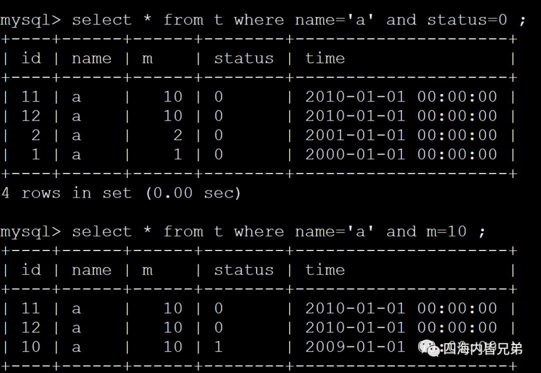 经常遇到索引比列还要多的表。为什么?因为开发结合业务需求一个场景一个索引。比如说一个表有id,name,status,time几个字段吧。然后看看这表的索引可能会出现如下的索引:
