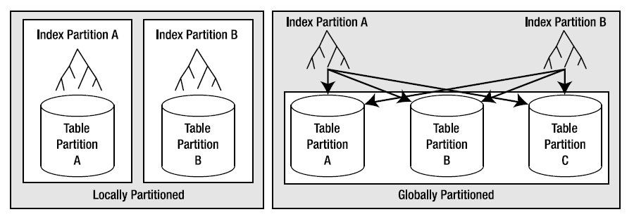 索引与表类似,也可以分区。对索引进行分区有两种可能的方法: