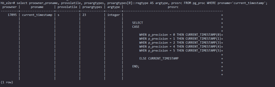 可以看到current_timestamp是的Provolatile状态s,是STABLE函数。