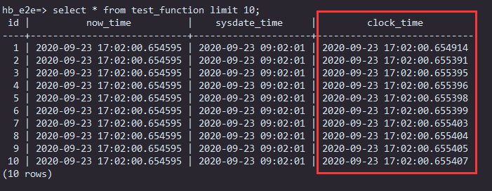 insert into test_function select generate_series(1,10000),now(),oracle.sysdate(),clock_timestamp(); |