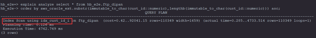 CREATE OR REPLACE FUNCTION immutable_to_char(numeric) RETURNS character varying AS 'select aws_oracle_ext.to_char($1)' LANGUAGE SQL IMMUTABLE; CREATE INDEX idx_cust_id_i ON hb_e2e.ftp_dipan USING BTREE (aws_oracle_ext.substr(immutable_to_char(cust_id::numeric),lengthb(immutable_to_char(cust_id::numeric)) ) ASC); |