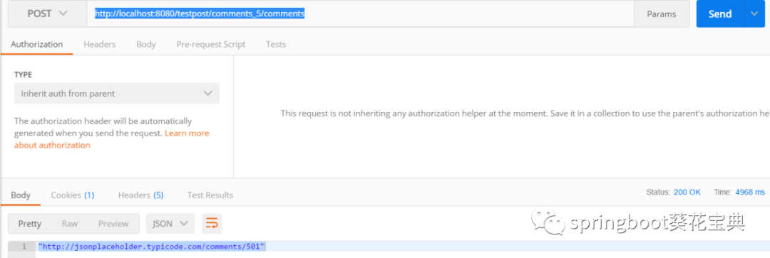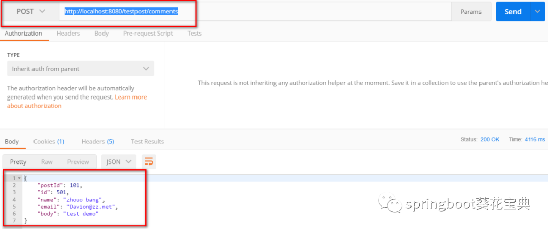 使用postman 测试http://localhost:8080/testpost/comments_5/comments