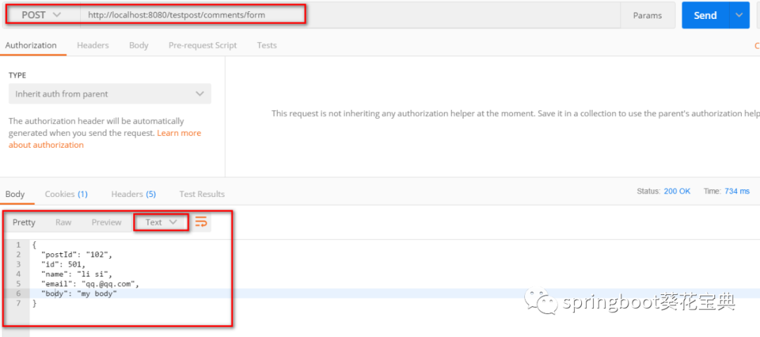 使用Postman测试http://localhost:8080/testpost/comments/form结果如下