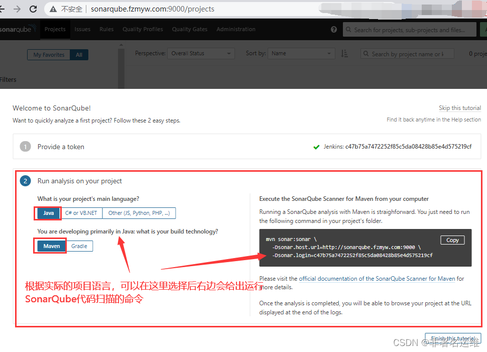 -访问SonarQube并生成连接SonarQube的令牌(密码)