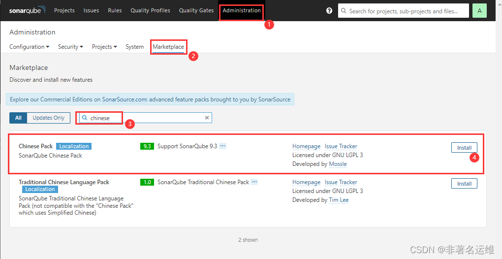 手动安装中文汉化插件:1.下载要安装的插件,该版本需要与您的 SonarQube 版本兼容。