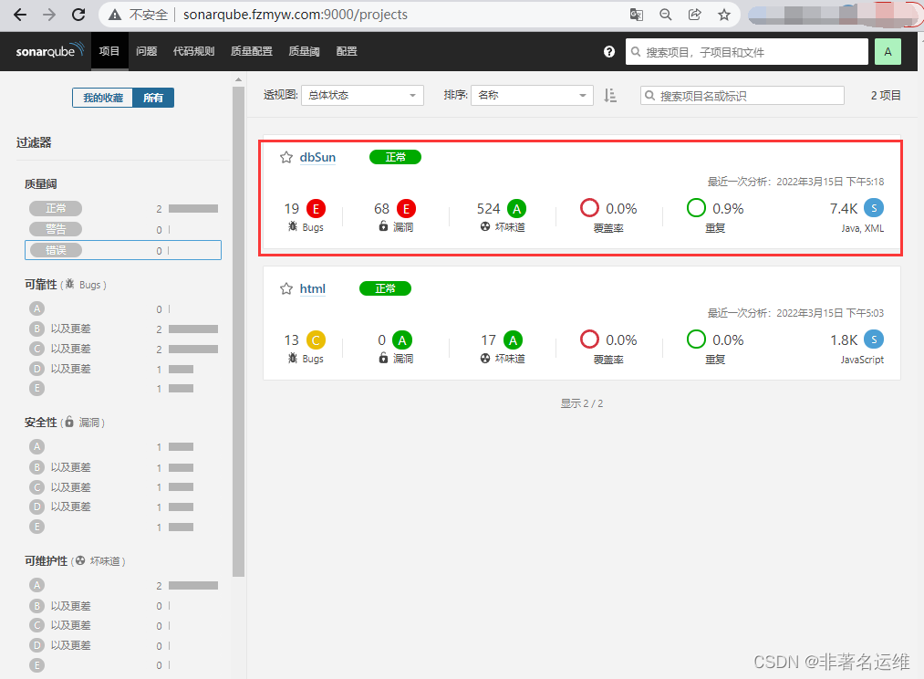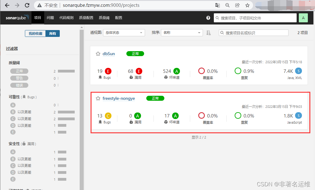 -访问SonarQube,查看刚才扫描的Java代码项目