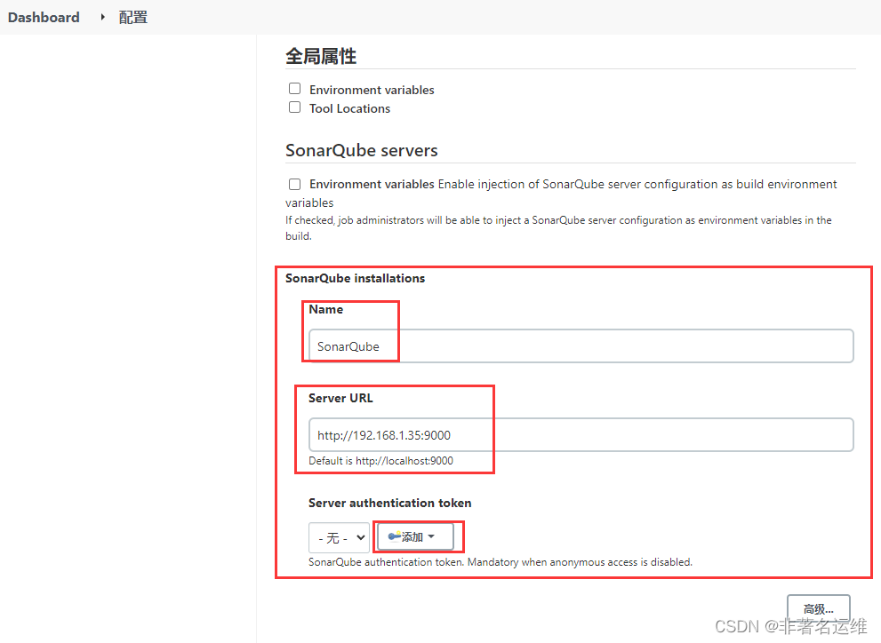 -需要在Jenkins上配置SonarQube服务端系统管理-->系统设置-->SonarQube (告诉Jenkins SonarQube的Servers服务端地址)