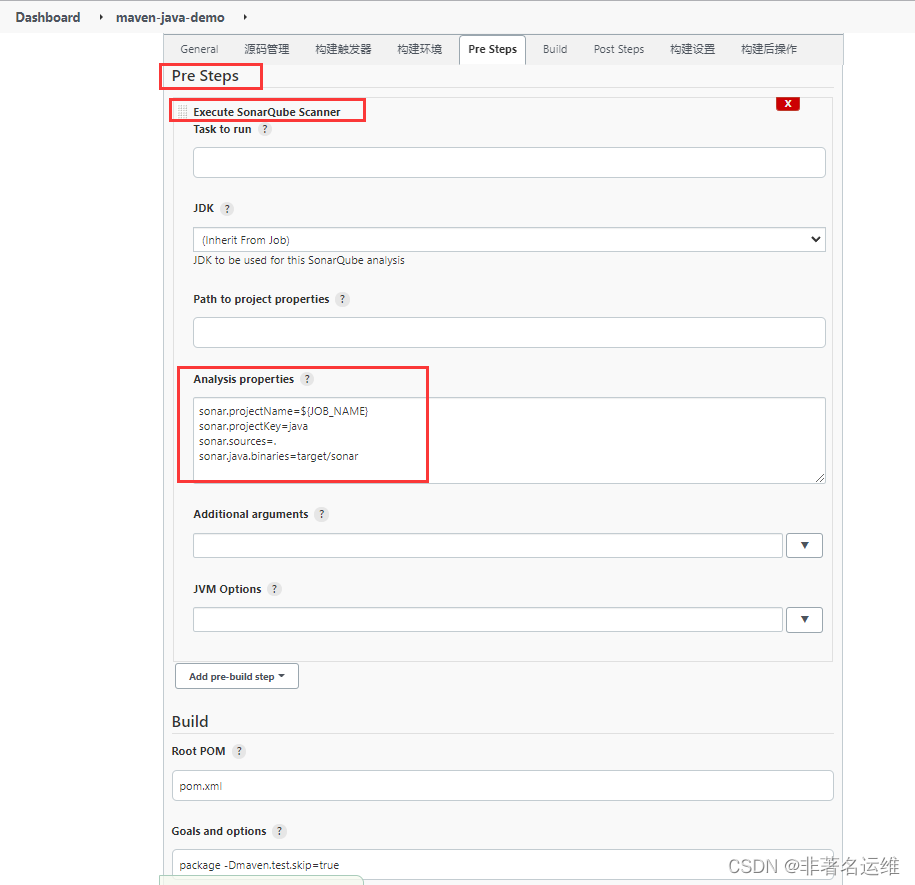 -找到之前的freestyle项目,新增构建步骤,使用下面的代码质量分析参数