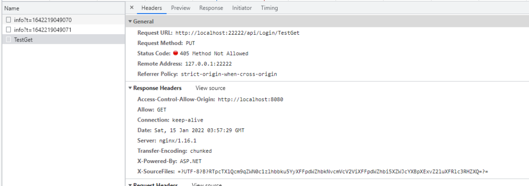 Access to XMLHttpRequest at 'http://localhost:22222/api/Login/TestGet' from origin 'http://localhost:8080' has been blocked by CORS policy: Method PUT is not allowed by Access-Control-Allow-Methods in preflight response.