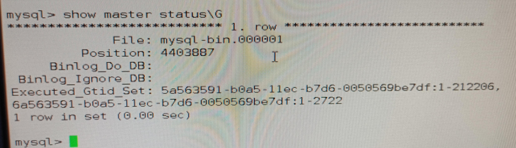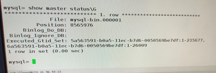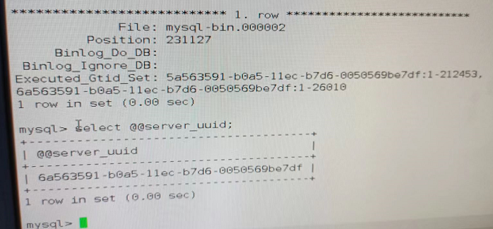 发现此刻的从库的GTID_SET 5a开头的那个少了一个事务,也就是说旧主A没有将事务全部同步到旧从B,导致现在B少了一个事务,就切换为新主了。