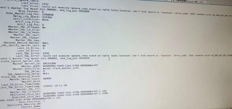 主库异常宕机挂掉,truncate没有同步到从库,而当主库重启,被作为新从库,重新加入到主从中去的时候,由于该表数据已经被truncate掉,新主中对该表数据的update 操作同步过来的时候就会报错1032,找不到要更新的数据,主从异常。为了避免主从不一致,尝试改为增强半同步,依然没有解决该问题。