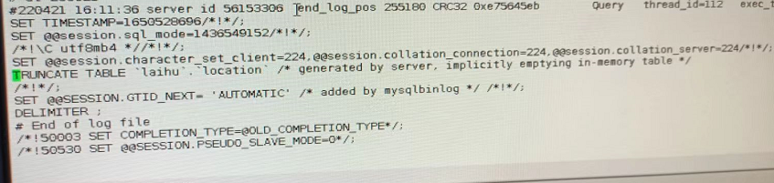 解析B库的所有binlog信息,并没有发现有对该表进行drop ,detete,或者truncate 操作。