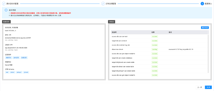 3.配置确认阶段 这个阶段会进行预检查,检查连通性和授权等情况。