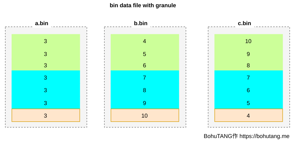 各个 bin 文件以 b.bin排序对齐(b 是排序键),如图: