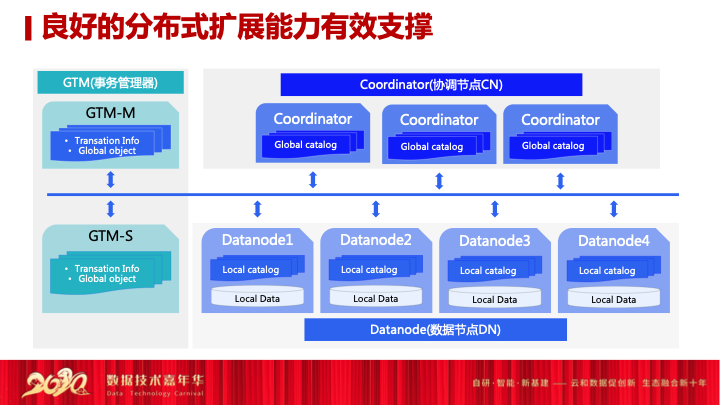 第一个就是如何保证好数据强一致,我们目前实现的方式就是二阶段提交+单分片内的扶持,再用GTM去保证实施的强一致。另外会提供金融级别的高可用能力,目前我们提升同城容灾和异地容灾,包括同城双活不同的产品组合为用户提供高可用预测。