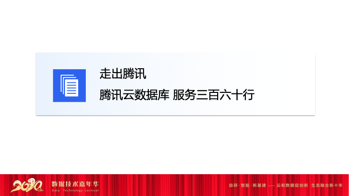 最后想介绍一个板块,腾讯云的数据库也在积极探索如何更好的服务好国计民生。在今年我们除了疫情这个关键词之外,还有一个关键词就是中美关系,或者说国际关系。