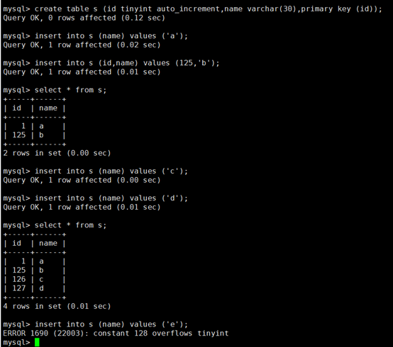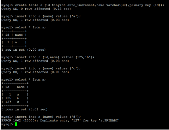 所以这个到了127以后,不能加了,再增加还是127.还要继续就报主键冲突了。这种只能改类型了。