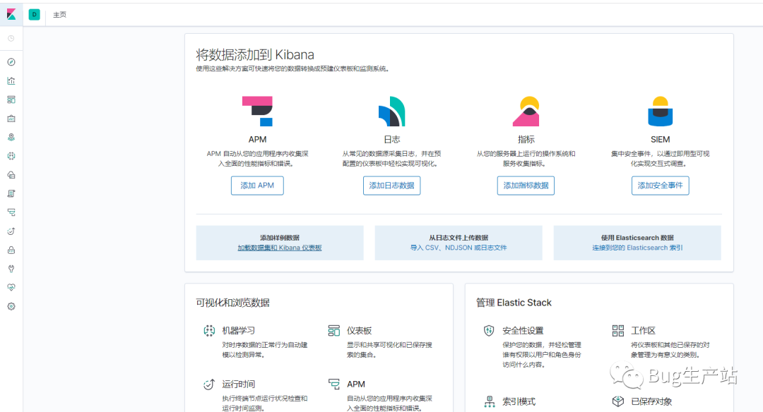 # 启动kibanadocker run --name kibana -e ELASTICSEARCH_HOSTS=http://192.168.255.128:9200 -p 5601:5601 -d kibana:7.4.2# 进入kibana容器docker exec -it 1d /bin/bash# 配置kibana显示中文vi /usr/share/kibana/config/kibana.yml# 在文件末尾加i18n.locale: "zh-CN"