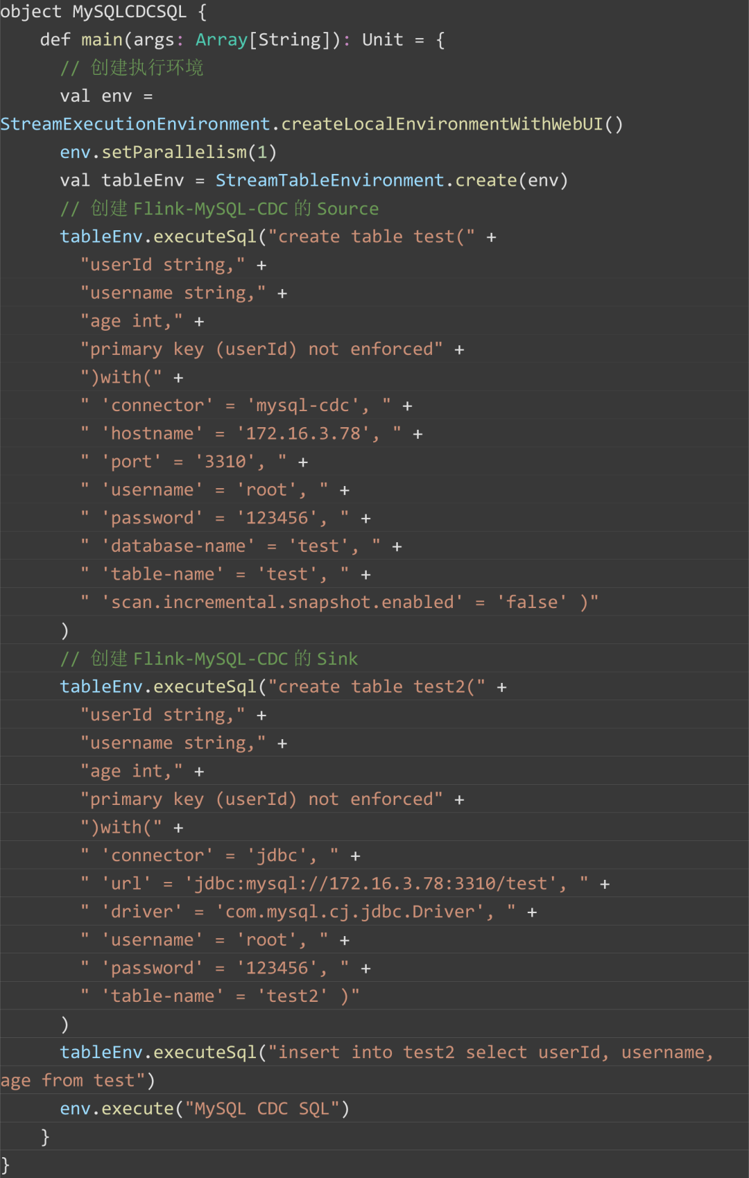 由于 Flink CDC 内部集成了 Debezium 组件,通过 Debezium 进行数据采集,所以数据格式同 Debezium,监听到的数据格式如下图所示,after 代表变化后的数据;source 代表源端的数据库相关信息,包括 Debezium 版本号、连接器类型、数据库名、表名等;op 代表操作的类型,此处为读操作。