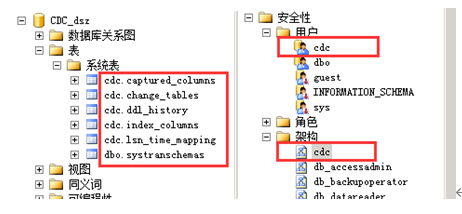开启CDC后,会创建系统表,同时也会创建cdc用户和cdc架构,如下图: