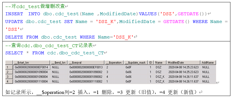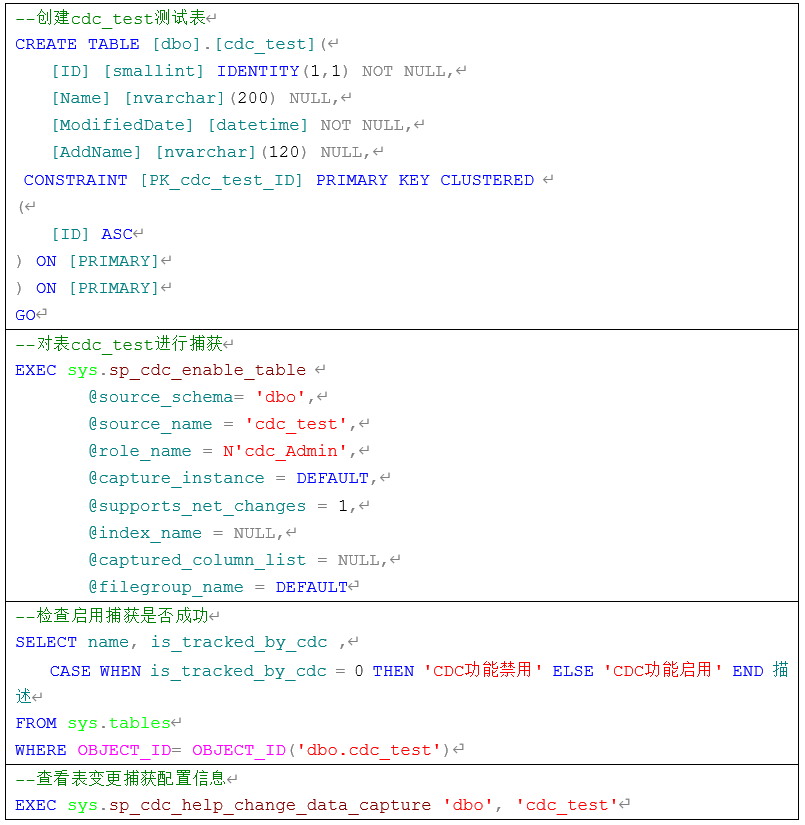 2.2 创建测试表捕获更改记录