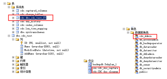 配置完上面的步骤,会发现多了一个系统表、两个代理作业、一个数据库角色,如下:
