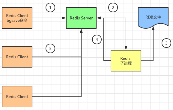 依旧是Redis Client发起命令,不过命令改成了bgsave(background save有后台运行的意思),照旧请求Redis Server。