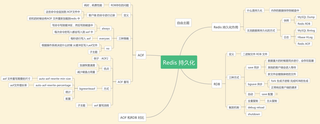 本文从为什么需要数据库持久化作为切入点,谈到Redis中的两类数据库持久化机制:RDB和AOF。其中针对RDB持久化通过介绍RDB文件结构、触发持久化的机制和流程进行了阐述。其包括:save同步方式、bgsave同步方式和自动配置方式。针对AOF持久化,通过AOF持久化流程、缓冲区同步文件策略以及AOF重写机制进行了介绍。其中缓冲区同步策略包括:always策略、everysec策略和no策略。