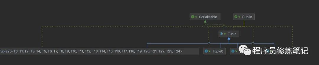从上图可以看出,Tuple有很多个实现类,Tuple2代表可以存放2个属性,Tuple25代表可以存放25个属性。