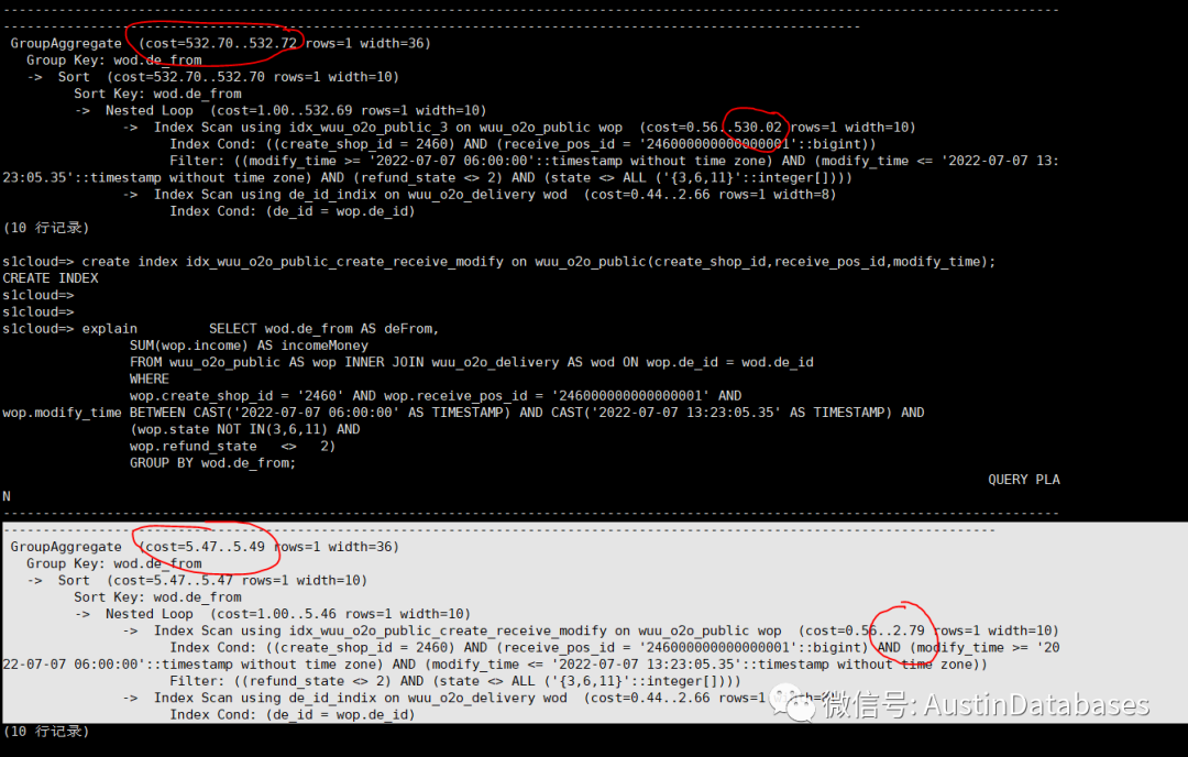 按照开发的思路,他建立的索引 idx_wuu_o2o_public_2 是符合他思路的索引 "idx_wuu_o2o_public_2" btree (modify_time, receive_pos_id, create_shop_id) 而实际上走的索引,缺失下面的索引"idx_wuu_o2o_public_3" btree (create_shop_id, receive_pos_id, create_time)