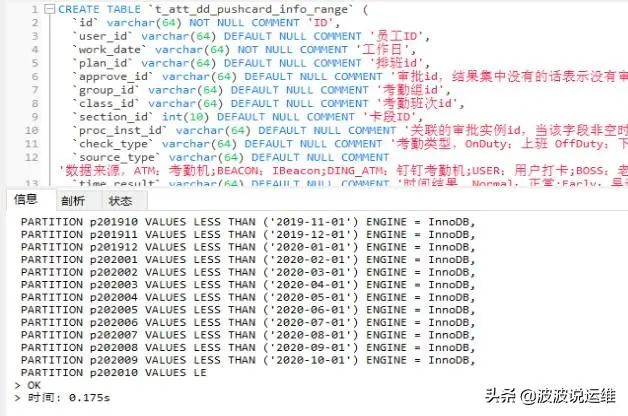 PARTITION p201910 VALUES LESS THAN ('2019-11-01') ENGINE = InnoDB,