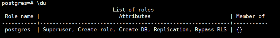 postgres=# select * from pg_stat_activity;19、查询数据库中已经存在的用户和角色