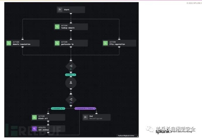 3、splunk的SOAR是以Rest API的形式实现的。首先,从SIEM和UEBA中获取告警。就可以开始写剧本,这个剧本代表着分析过程以及匹配时做什么动作。
