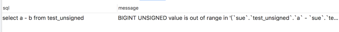 所以,在使用无符号字段时,千万要注意字段相减出现负数的坑,建议还是使用有符号字段,避免不必要的问题。