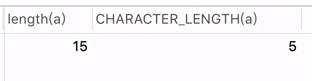 create table test_varchar(a varchar(20));insert into test_varchar values('苏三说技术');select length(a),CHARACTER_LENGTH(a) from test_varchar;