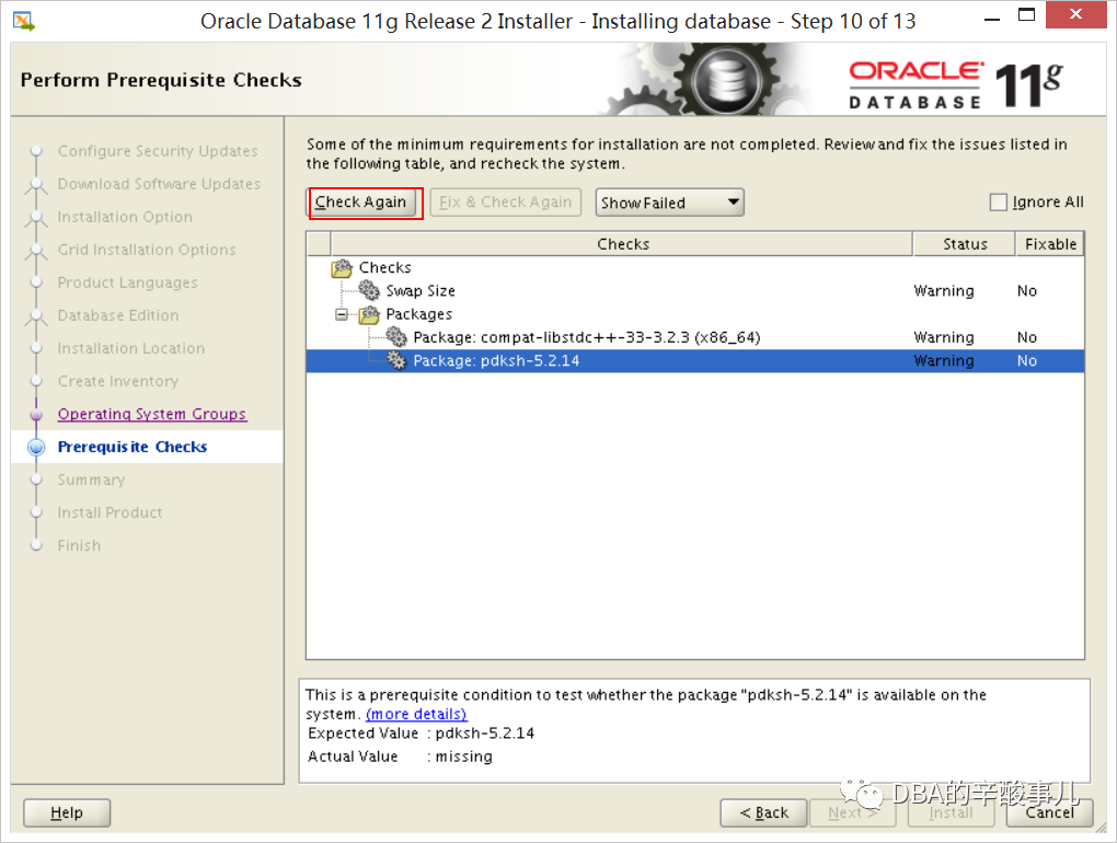 pdksh-5.2.14的是oracle建议在oracle定制机上安装,我这里的不是,所以会报这个告警,可以忽略。