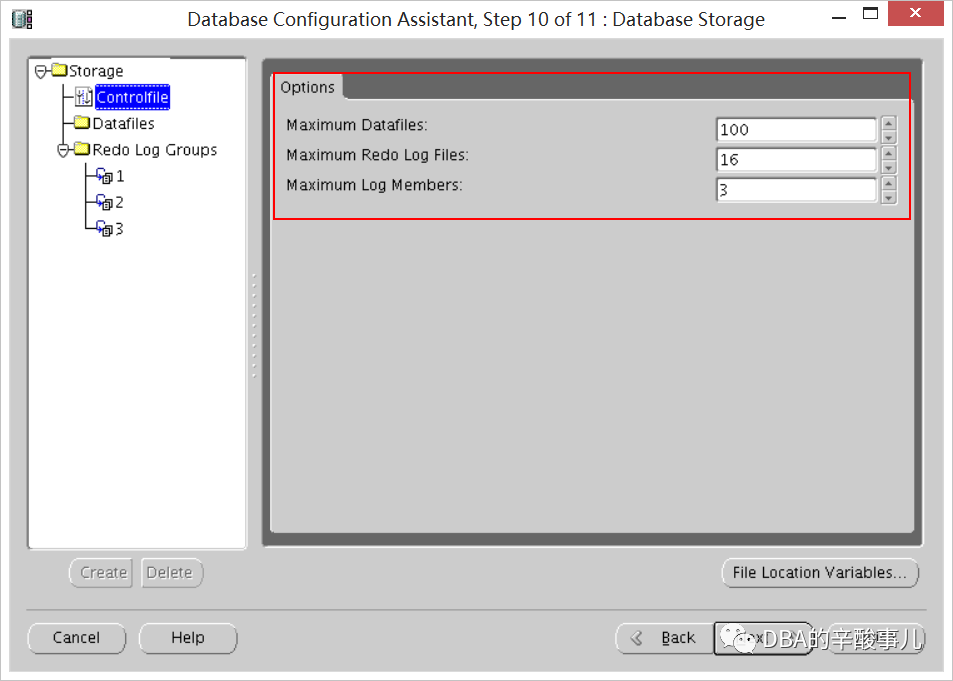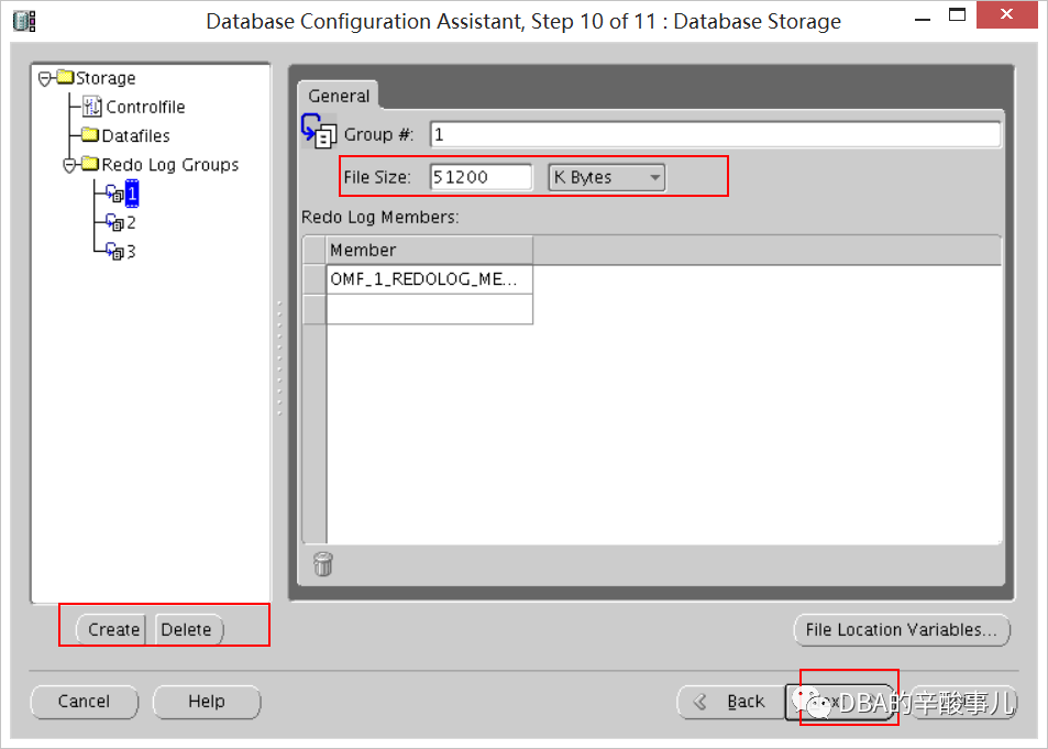 此处设置redo log文件的大小,和添加个删除,后期可以修改。